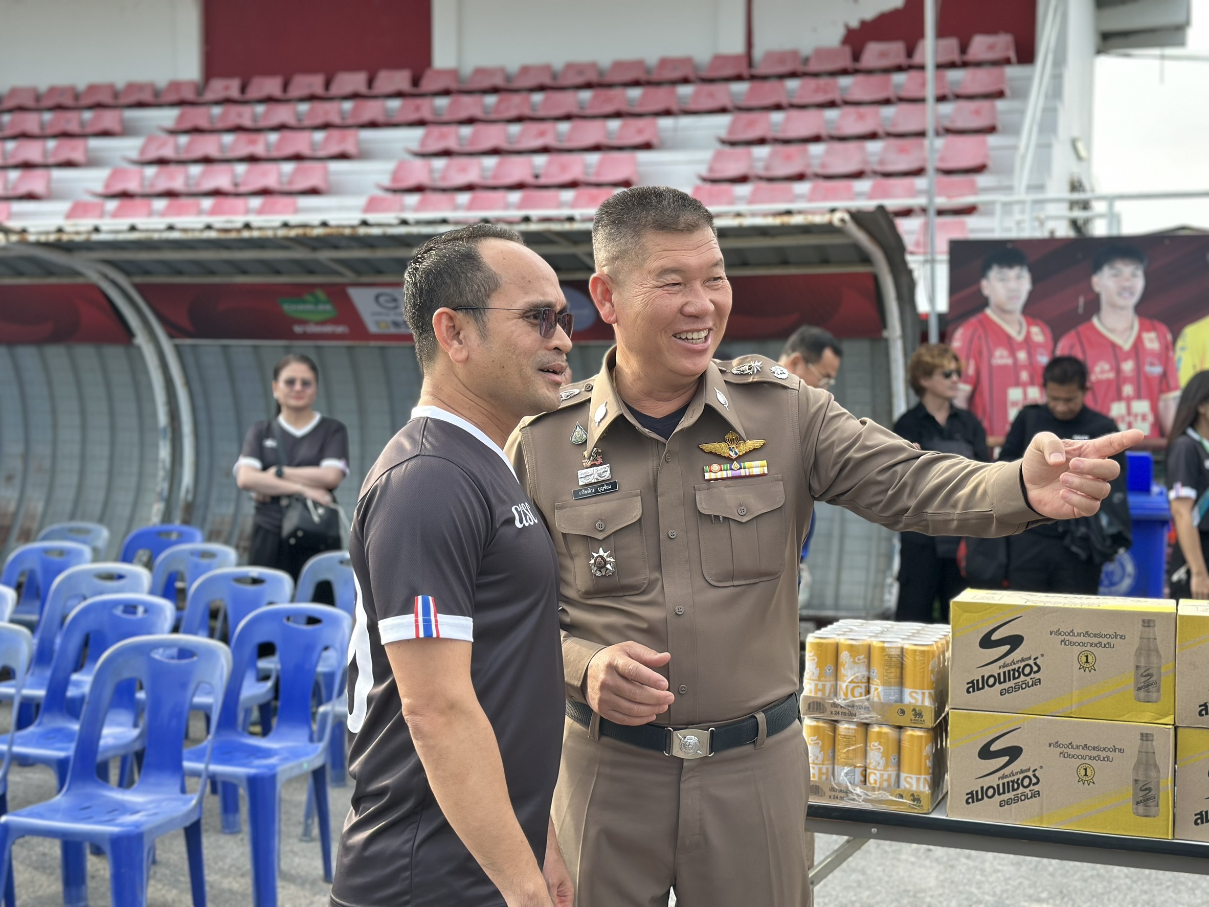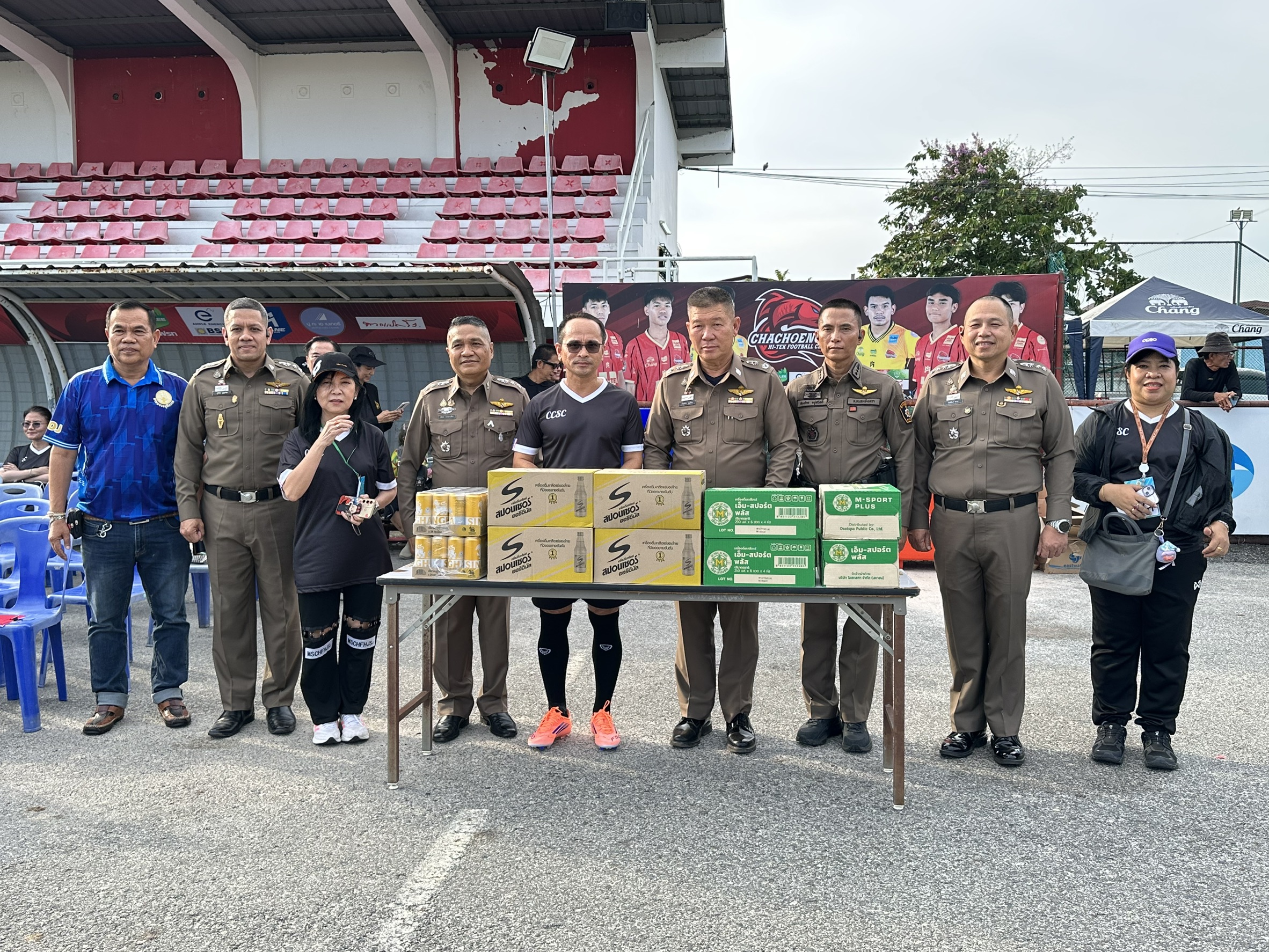 พล.ต.ต.เกรียงไกร บุญซ้อน ผบก.ภ.จว.ฉะเชิงเทรา ,พ.ต.อ.สมชาย อยู่สวัสดิ์ รอง ผบก.ภ.จว.ฉะเชิงเทรา, พ.ต.อ.ชัยพร ทองนาเพียง รอง ผบก.ภ.จว.ฉะเชิงเทรา, พ.ต.อ.กิตติสัณห์ ชะนะ รอง ผบก.ภ.จว.ฉะเชิงเทรา , พ.ต.อ.ภูริทัต บุญช่วย ผกก.สภ.เมืองฉะเชิงเทรา ร่วมกิจกรรมโครงการกีฬาสานสัมพันธ์ เสริมสร้างความสามัคคี ซึ่งจัดโดยศาลจังหวัดฉะเชิงเทรา พร้อมกับมอบของสนับสนุนนักกีฬาเพื่อเป็นขวัญและกำลังใจในการแข่งขันต่อไป ณ สนามกีฬาเทศบาลเมืองฉะเชิงเทรา ต.หน้าเมือง อ.เมืองฉะเชิงเทรา จ.ฉะเชิงเทรา
